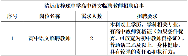 清遠(yuǎn)市梓琛中學(xué)急聘高中語文臨聘教師